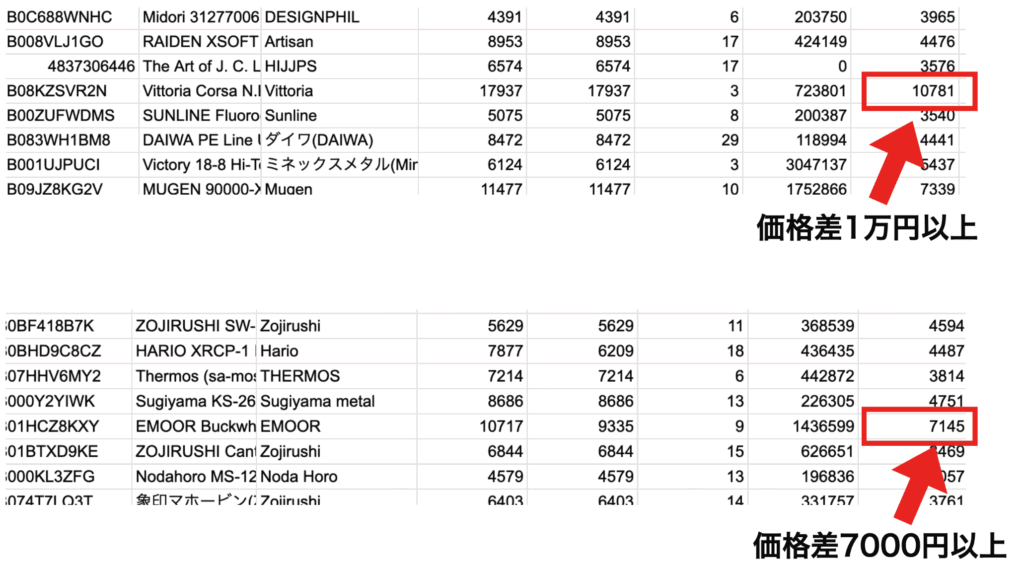 日米の差額のあるものをまとめたリストを提供しています(月額制)
